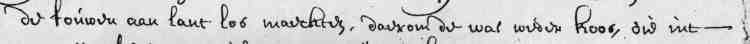 zeer beducht ons op't eijland mochte gebannen hebben, om 't leven inde gevangckenis te eijndigen, van ontvluchten om ende weder siende, of bij nacht eenig vaartuijg aan de wal met sijn gereetschap leggende, conden becomen, ende 't hasepat te kiesen, 't welcq int laetse van april met haer lessen, waer onder den opperstuijrman, ende nog drie van de terecht gecomen maets waren, onder staen soude hebben, een van de maets over de muijr climmende om naer't vaertuijg ende t' getij van 't water te sien, wiert het de wacht door 't blaffen vande honden als andersints gewaer, waer over soo scherpen wacht hielden, dat voor die tijd van haren aanslag oversteecken waren Int begin van meij ging den stuijrman met nog vijff andere maets (waer vander drie als vooren terecht gecomen Zijn,) op haere beurt uijt gaende, vonden dicht bijde, stadt een vaertuijgh met sijn gereetschap sonder volcq daar in, (bij een cleijn dorpje, leggen, sonden terstont een man nae huijs om voor ijder twee cleijne brootjes, ende eenige platting daertoe gemaect, te halen, weder bij malcanderen gecomen Zijnde, jder een dronck water gedroncken hebbende, sonder ijets meer mede te nemen, traden int voorseijde vaertuijgh, 't selve over een banck die daar voor lagh, treckende int bijstaende van eenige van die vant dorpje, die heel verbaest staande, niet wetende wat het te beduijden was, eijndelijck een int huijs loopende, ende haelden een musquet waer mede hij die int vaertuigh waren tot int water toe nae liep, raeckende egter buijten, behalven een die int vaertuigh niet conde comen, door die de touwen aan lant los maeckten, daerom de wal weder koos, die int vaertuig 't zeijl op heijsende, alsoo hij met 't gereetschap niet wel conden om gaen, viel de mast met 't zeijl overboort, die sij met groote moeijten weder ![]() op kregen, mette platting aende mast doft gebonden hebbende, ende 't seijl als vooren opheijssende, Ist spoor vande mast gebrooken, de mast met 't seijl voorde tweede mael overboort gevallen, costent doen niet weder op crijgen, dreven alsoo na de wal, die van 't land Zulcx Ziende, sijn haer datelijck met een ander vaertuijgh gevolght, bij malcanderen comende, sprongen de onse bij haer over, hoe wel sij geweer hadden, in meeninge haer overboort te smijten, ende met 'tselve vaertuijgh door te gaen, maer vondent ten ![]() naesten bij vol water, en onbequaam te sijn, voeren derhalve met malcan deren naer lant, van daer voor den gouverneur gebracht sijnde, liet haer wel strengelijck binden, een sware planck met een ketting omden hals, d'eene hant met een clamp op de planck gespijckert, voor hem neder werpen de vordere wierden mede uit 't gevangken huijs gehaelt, mede wel strengelijck gebonden sijnde, voorden gouverneur gebracht, alwaer wij onse maets in Zulcken droefheijt sagen leggen, den gouverneur liet haer vragen oft sij Zulcx sonder ofte met weten van d'andere hadden gedaen, gaven tot antwoort sonder weten van de andere geschiet te zijn, dat omde vorderen, swarigheijt ende straffe van hare mackers voor te comen, waer op den
